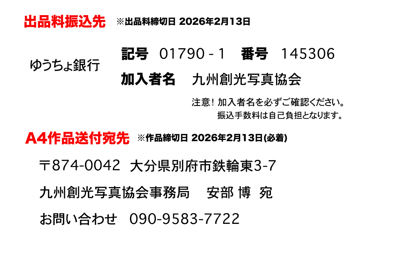 九州創光写真協会事務局 Tel 090-1518-9068 (有馬)